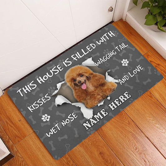 Personalized Poodle Welcome Doormat, Poodle dog pet lover pawprint grey Welcome Doormat, Custom Name Pets Home Decor Door Mat