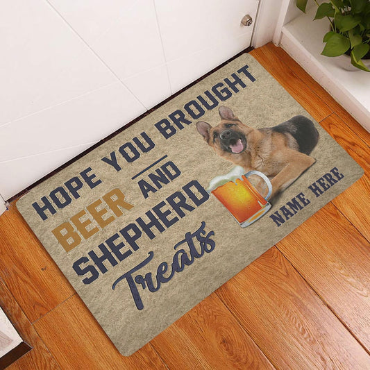 Personalized Welcome Doormat, Brought Beer And German Shepherd Treat Welcome Doormat, Custom Name Pets Home Decor Door Mat