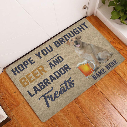 Personalized Welcome Doormat, Brought Beer And Labrador Treat Welcome Doormat, Custom Name Pets Home Decor Door Mat