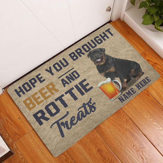 Personalized Welcome Doormat, Brought Beer And Rottie Rottweiler Treat Welcome Doormat, Custom Name Pets Home Decor Door Mat