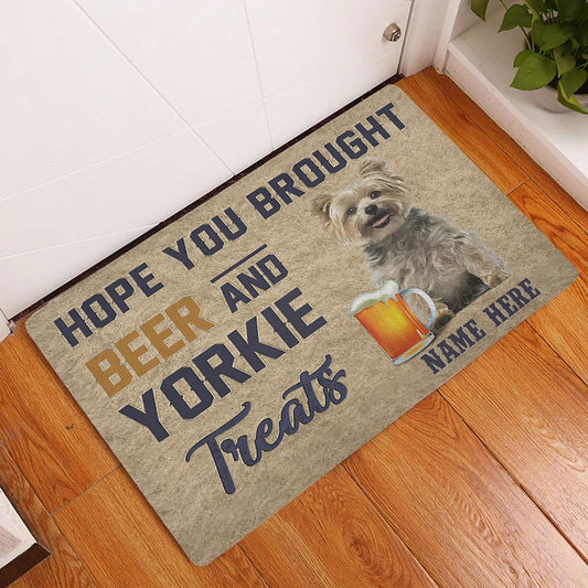 Personalized Welcome Doormat, Brought Beer And Yorkie Treat Welcome Doormat, Custom Name Pets Home Decor Door Mat