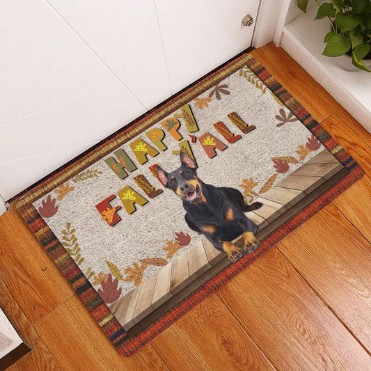 Dobermann Welcome Doormat, Dobermann Dog Happy Fall Y'all Pumpkin Spice Leaf Welcome Doormat, Pets Home Decor Door Mat