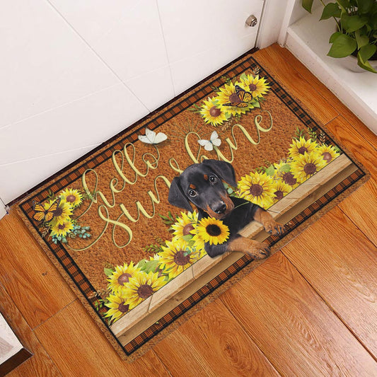 Dobermann Welcome Doormat, Dobermann Dog Hello Sunflower Butterfly Welcome Doormat, Pets Home Decor Door Mat