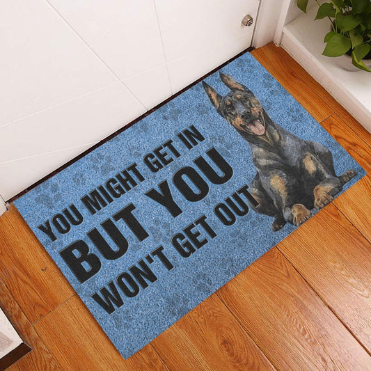 Dobermann Welcome Doormat, Dobermann Pinscher Dog You Might Get In But You Won't Get Out Welcome Doormat, Pets Home Decor Door Mat