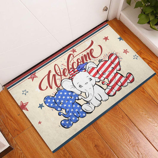 Elephant Welcome Doormat, Elephant Patriotic American Firework 4Th July Independence Day Welcome Doormat, Pets Home Decor Door Mat