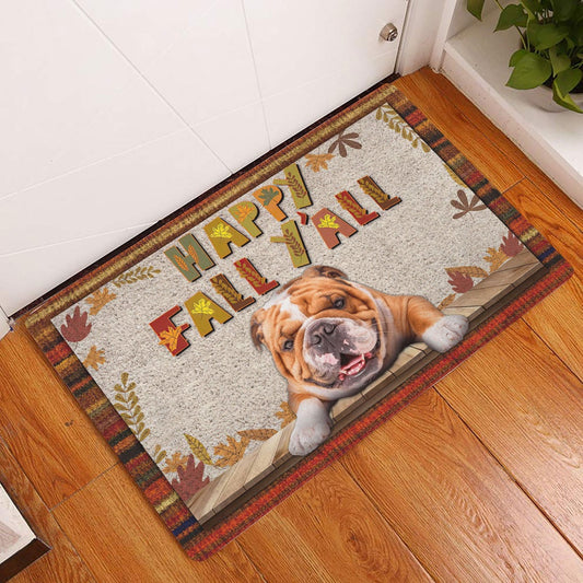 English Bulldog Welcome Doormat, English Bulldog Dog Happy Fall Y'all Pumpkin Spice Maple Leaf Welcome Doormat, Pets Home Decor Door Mat