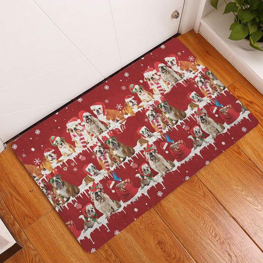 English Bulldog Welcome Doormat, English Bulldog Merry Christmas Snow Christmas Tree Xmas Holiday Welcome Doormat, Pets Home Decor Door Mat