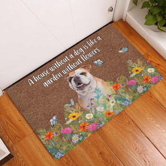 English Bulldog Welcome Doormat, English Bulldog house without dog is like garden without flowers Welcome Doormat, Pets Home Decor Door Mat