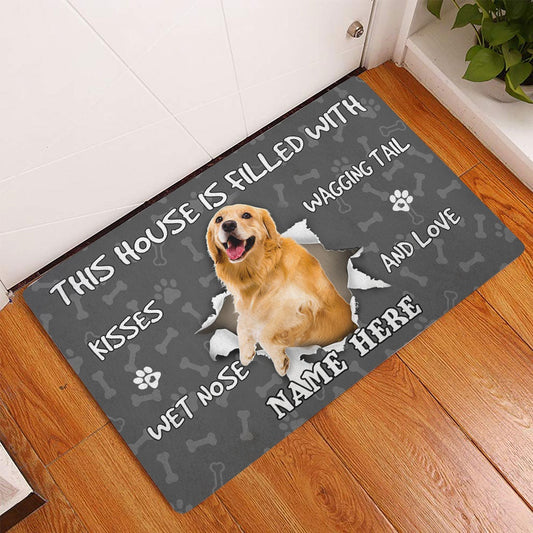 Personalized Golden Retriever Welcome Doormat, Golden Retriever dog pet lover pawprint Welcome Doormat, Custom Name Pets Home Decor Door Mat