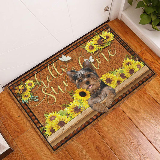 Yorkshire Terrier Welcome Doormat, Yorkshire Terrier Yorkie Shorkie Dog Hello Sunflower Welcome Doormat, Pets Home Decor Door Mat