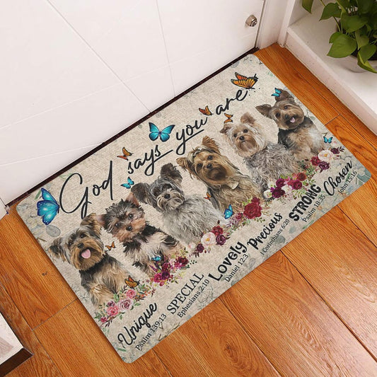 Yorkshire Terrier Welcome Doormat, Yorkshire Terriers God Says You Are Unique Gifts For Dog Lover Welcome Doormat, Pets Home Decor Door Mat