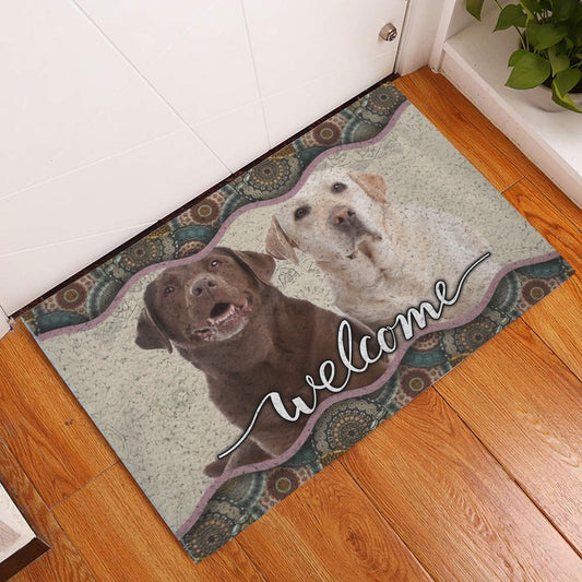 Welcome Doormat, Yellow & Chocolate Labrador Mandala Pattern Gift For Dog Lover Welcome Doormat, Pets Home Decor Door Mat