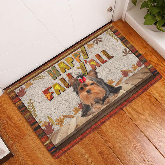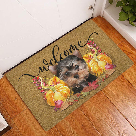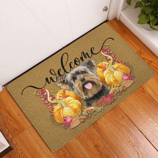 Yorkshire Terrier Welcome Doormat, Yorkshire Terrier Pumpkin Thanksgiving Autumn Happy Fall Y'all Welcome Doormat, Pets Home Decor Door Mat