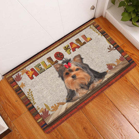 Yorkshire Terrier Welcome Doormat, Yorkshire Terrier Dog Hello Fall Pumpkin Spice Maple Leaf Autumn Welcome, Pets Home Decor Door Mat