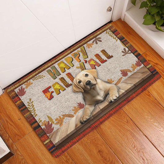 Welcome Doormat, Yellow Labrador Dog Happy Fall Y'all Pumpkin Spice Maple Leaf Welcome Doormat, Pets Home Decor Door Mat