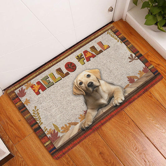 Welcome Doormat, Yellow Labrador Dog Hello Fall Pumpkin Spice Maple Leaf Autumn Welcome Doormat, Pets Home Decor Door Mat