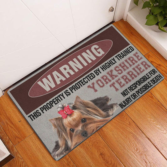 Yorkshire Terrier Welcome Doormat, This Property is Protected by Highly Trained Yorkshire Terrier Welcome Doormat, Pets Home Decor Door Mat