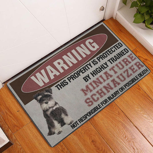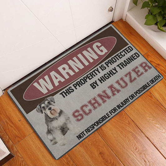 Schnauzer Welcome Doormat, Warning This Property is Protected by Highly Trained Schnauzer Welcome Doormat, Pets Home Decor Door Mat