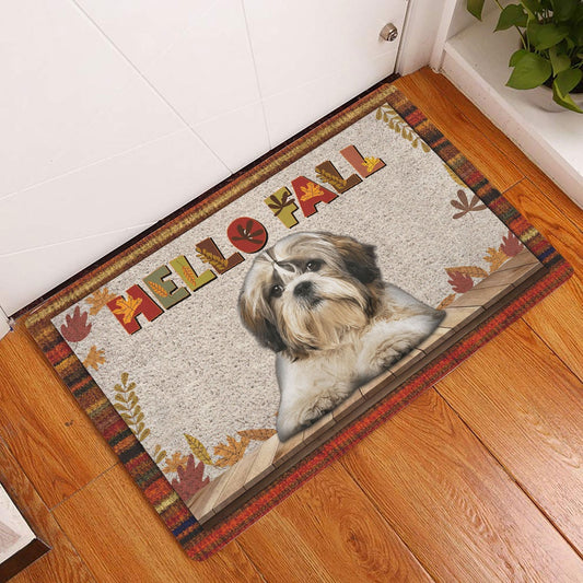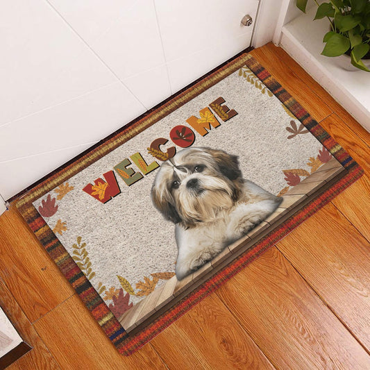Shih Tzu Welcome Doormat, Shih Tzu Shitzu Dog Hello Fall Pumpkin Spice Maple Leaf Autumn Welcome Doormat, Pets Home Decor Door Mat