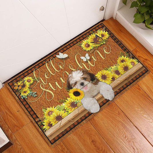 Shih Tzu Welcome Doormat, Shih Tzu Shitzu Dog Hello Sunflower Butterfly Welcome Doormat, Pets Home Decor Door Mat