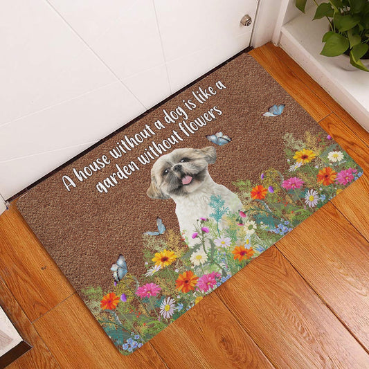 Shih Tzu Welcome Doormat, Shih Tzu a house without a dog is like a garden without flowers Welcome Doormat, Pets Home Decor Door Mat