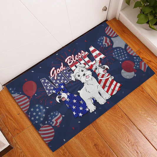Schnauzer Welcome Doormat, Schnauzer God Bless America Patriotic 4th of July Independence Welcome Doormat, Pets Home Decor Door Mat
