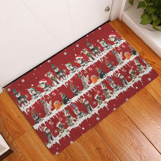 Schnauzer Welcome Doormat, Schnauzer Merry Christmas Snowflake Christmas Tree Welcome Doormat, Pets Home Decor Door Mat