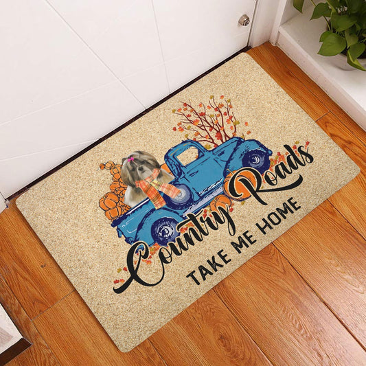 Shih Tzu Welcome Doormat, Shih Tzu Shitzu Country Road Take Me Home Fall Pumpkins Autumn Welcome Doormat, Pets Home Decor Door Mat