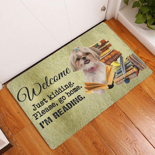 Shih Tzu Welcome Doormat, Shih Tzu Shitzu Dog And Book Please Go Home I'm Reading Welcome Doormat, Pets Home Decor Door Mat