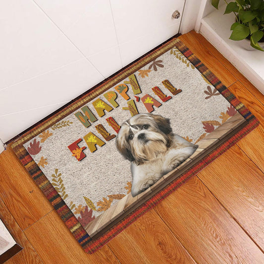 Shih Tzu Welcome Doormat, Shih Tzu Shitzu Dog Happy Fall Y'all Pumpkin Spice Maple Leaf Welcome Doormat, Pets Home Decor Door Mat