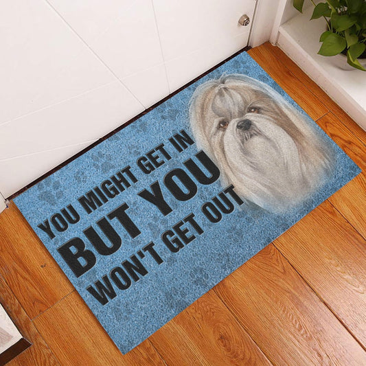 Shih Tzu Welcome Doormat, Shih Tzu Shitzu Dog You Might Get In But You Won't Get Out Welcome Doormat, Pets Home Decor Door Mat