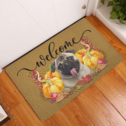 Pug Welcome Doormat, Pumpkin Spice Pug Dog Welcome Fall Autumn Welcome Doormat, Pets Home Decor Door Mat