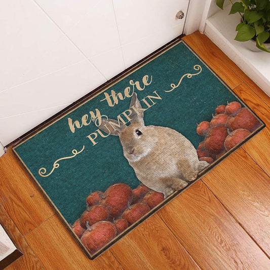 Rabbit Welcome Doormat, Bunny Rabbit Hey There Pumpkin Fall Halloween Thanksgiving Welcome Doormat, Pets Home Decor Door Mat