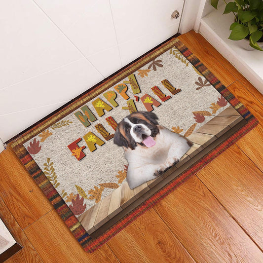 Saint Bernard Welcome Doormat, Saint Bernard Dog Happy Fall Y'all Pumpkin Spice Maple Leaf Welcome Doormat, Pets Home Decor Door Mat