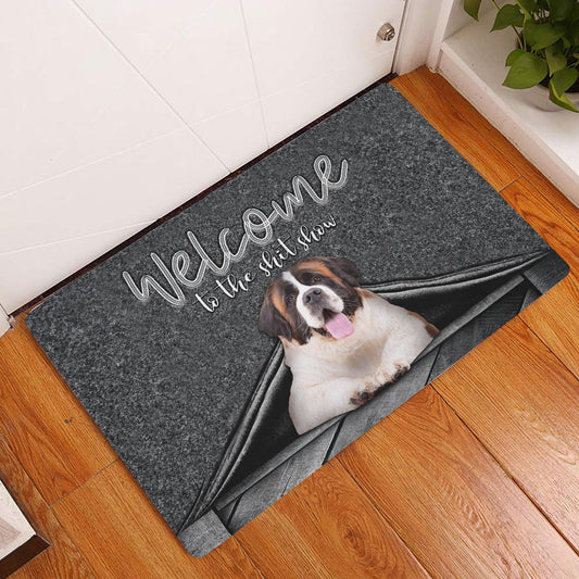 Saint Bernard Welcome Doormat, Saint Bernard Dog Welcome to The Shitshow Gifts For Dog Lovers Welcome Doormat, Pets Home Decor Door Mat