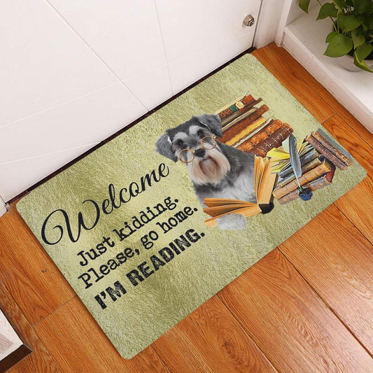 Schnauzer Welcome Doormat, Schnauzer Dog And Book Please Go Home I'm Reading Welcome Doormat, Pets Home Decor Door Mat