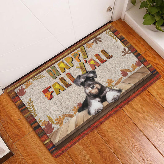 Schnauzer Welcome Doormat, Schnauzer Dog Happy Fall Y'all Pumpkin Spice Maple Leaf Welcome Doormat, Pets Home Decor Door Mat
