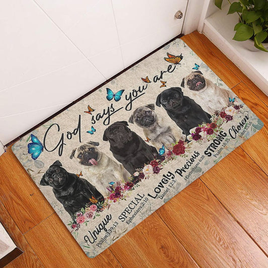 Pug Welcome Doormat, Pugs Dog God Says You Are Unique Gifts For Dog Lover Welcome Doormat, Pets Home Decor Door Mat