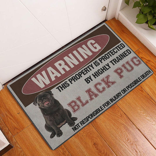 Pug Welcome Doormat, Warning This Property is Protected by a Highly Trained Black Pug Welcome Doormat, Pets Home Decor Door Mat