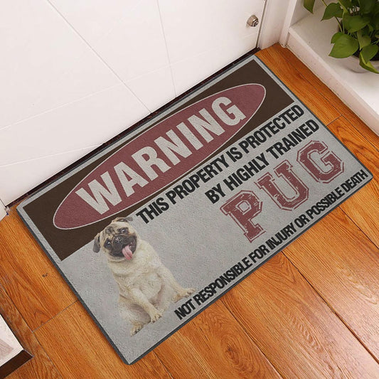 Pug Welcome Doormat, Warning This Property is Protected by a Highly Trained Pug Dog Welcome Doormat, Pets Home Decor Door Mat