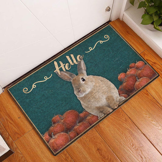 Rabbit Welcome Doormat, Bunny Rabbit Pumpkin Hello Fall Halloween Thanksgiving Holiday Welcome Doormat, Pets Home Decor Door Mat
