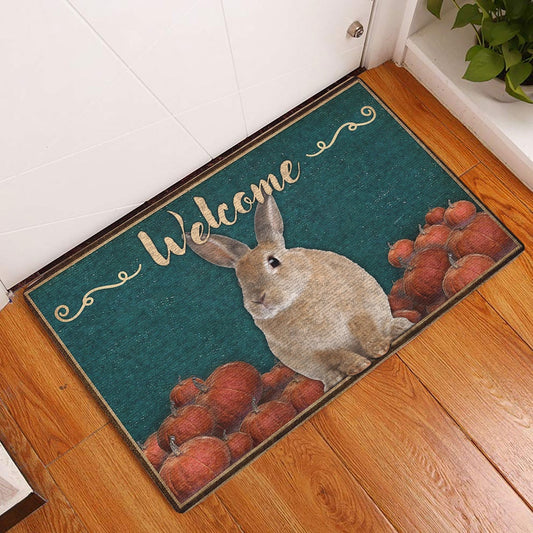 Rabbit Welcome Doormat, Bunny Rabbit Pumpkin Welcome Fall Halloween Thanksgiving Holiday Welcome Doormat, Pets Home Decor Door Mat