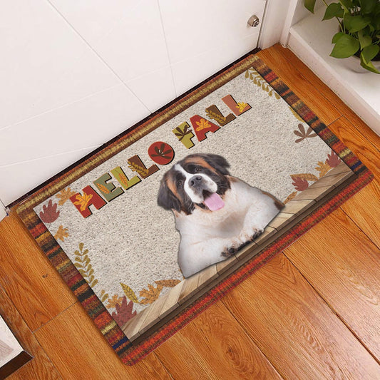 Saint Bernard Welcome Doormat, Saint Bernard Dog Hello Fall Pumpkin Spice Maple Leaf Autumn Welcome Doormat, Pets Home Decor Door Mat