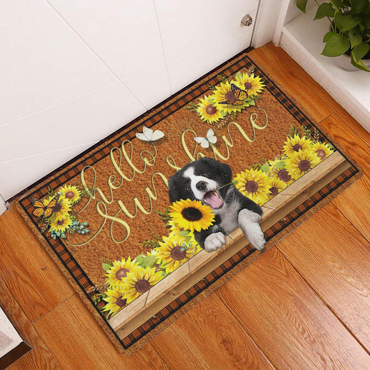Saint Bernard Welcome Doormat, St Bernard Dog Hello Sunflower Butterfly Welcome Doormat, Pets Home Decor Door Mat