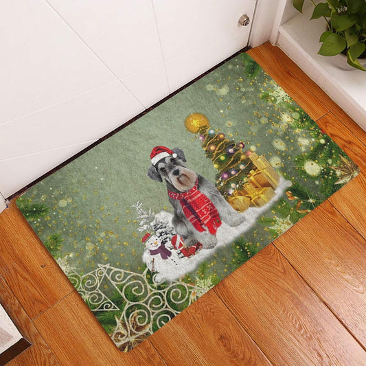 Schnauzer Welcome Doormat, Schnauzer Dog Merry Christmas Snow Christmas Tree Xmas Holidays Welcome Doormat, Pets Home Decor Door Mat