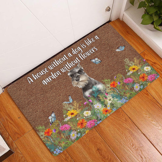 Schnauzer Welcome Doormat, Schnauzer a house without a dog is like a garden without flowers Welcome Doormat, Pets Home Decor Door Mat
