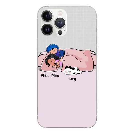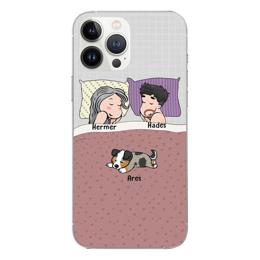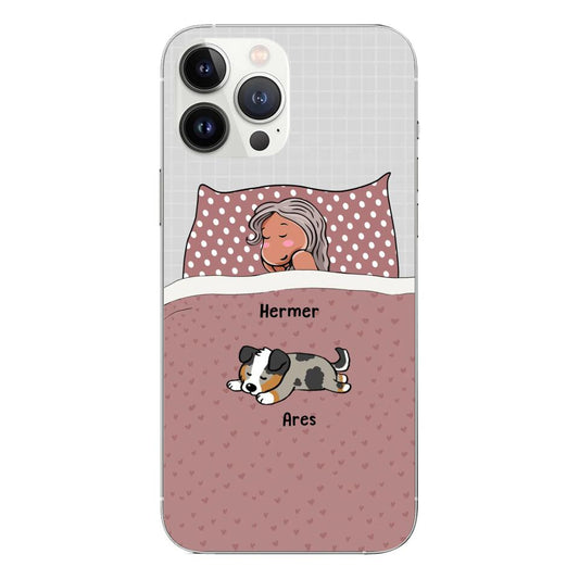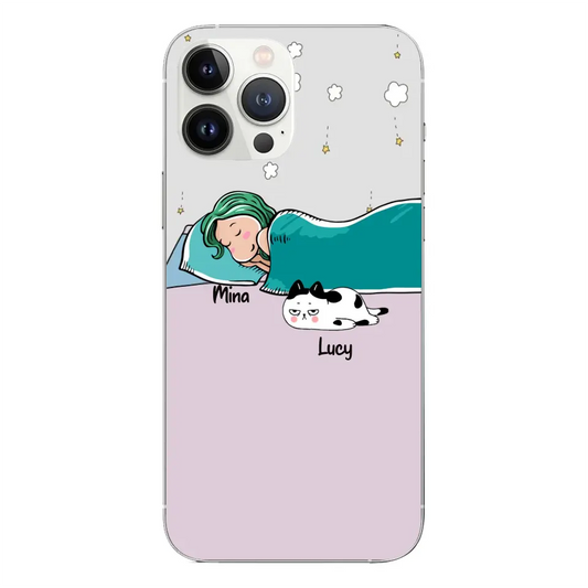 Custom Phone Case For Pet Lovers - Unique Gift With Personalized Pets - Person Sleeps With Lazy Pets
