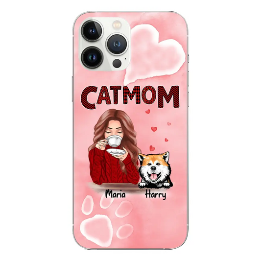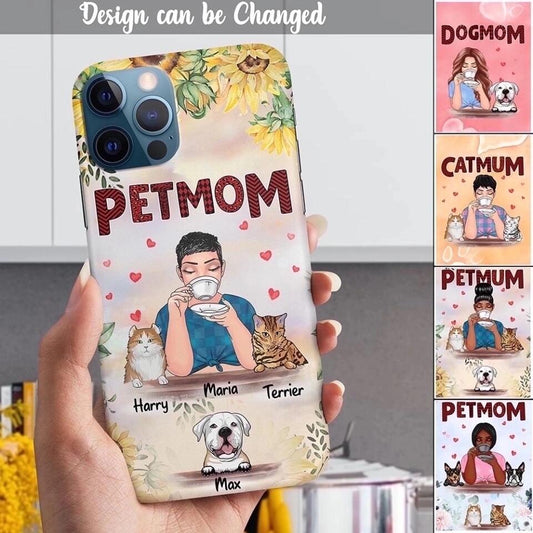 Custom Phone Case For Girlfriend - Unique Gift With Personalized Pets - Pet Mom With Dogs Cats