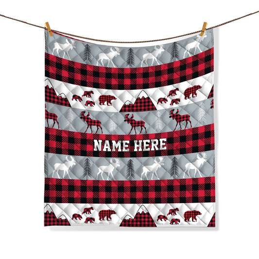 Custom Red Buffalo Plaid Bedding Set & Pillowcases, Rustic Moose Bear Quilt Bedding Set, Christmas Beddings, Xmas Bedding Sets