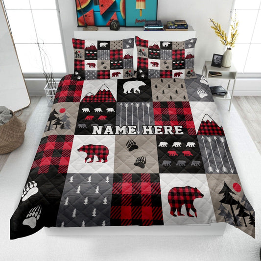 Red Buffalo Plaid Bedding Set & Pillowcases, Bear Cabin Quilt Bedding Set, Christmas Beddings, Xmas Bedding Sets